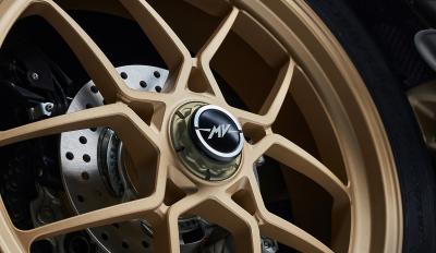 Οι ζάντες είναι αλουμινένιες σφυρήλαστες στα 3,5 κιλά πίσω και τρία μπροστά, δύο κιλά ελαφρύτερες από ότι αν ήταν χυτές.