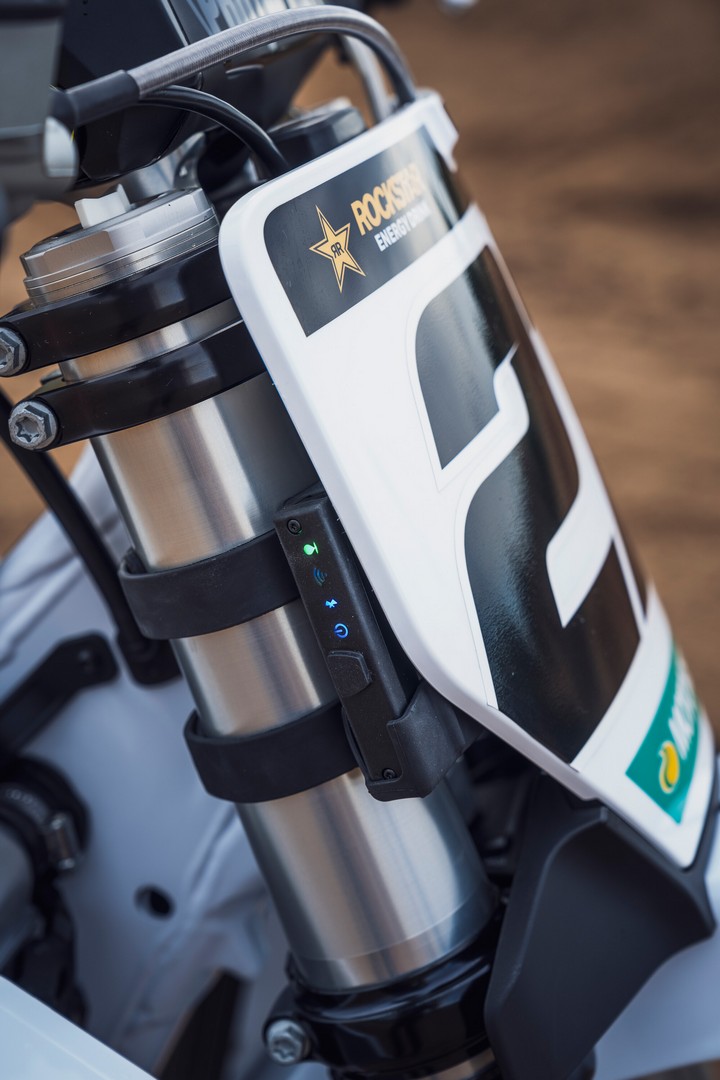 Λίγο πριν την παρουσίαση της Rockstar Edition της Husqvarna, η οποία ανήκει στο Pierer Group, είχαμε δει αυτήν της Factory Edition των SX-F της KTM, όπου γνωρίσαμε την Μονάδα Συνδεσιμότητας Offroad (CUO). Μέσω της σύνδεσης της CUO με την εφαρμογή Ride Husqvarna Motorcycles, ο αναβάτης έχει στα χέρια του μία πληθώρα επιλογών. Επιλέγοντας την καρτέλα ENGINE, εμφανίζεται μία επιλογή από προκαθορισμένες χαρτογραφήσεις κινητήρα, που βασίζονται σε διαφορετικές συνθήκες πίστας, που μπορούν με εύκολο τρόπο να ενεργοποιηθούν, να ρυθμιστούν από τον αναβάτη και να αποθηκευτούν. Μέσω της μονάδας ο αναβάτης μπορεί ακόμα να προβεί σε όλες τις ρυθμίσεις που είδαμε για φρένο κινητήρα, Launch και Traction Control, αλλά και την ευαισθησία του Quickshifter -που λειτουργεί μόνο για τα ανεβάσματα.
