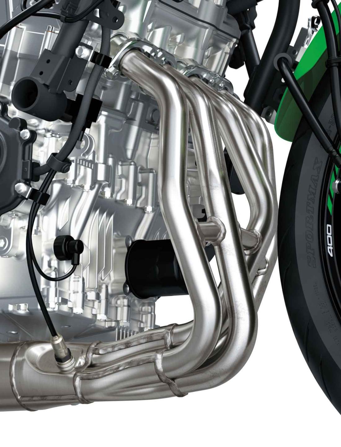 Αυτό που διαφοροποιεί το ZX-4R απ’ όλα τα σπορ 400άρια μοντέλα της αγοράς, είναι φυσικά ο τετρακύλινδρος υγρόψυκτος και ψεκαστός κινητήρας των 399 κ.εκ., με 2 εκκεντροφόρους επικεφαλής και Ram Air που του χαρίζει 76 hp (77 ps) χωρίς τη χρήση Ram Air και 79 hp (80 ps) με Ram Air. Για την ώρα η Kawasaki δεν δίνει τις στροφές στις οποίες αποδίδεται η μέγιστη ισχύς, αναφέρει όμως πως ο κινητήρας ανεβάζει “πάνω από 15.000 rpm”! Επιπλέον οι “πράσινοι” δεν μας δίνουν ούτε το νούμερο της ροπής, με το δελτίο τύπου να αναφέρει πως “ο κινητήρας διαθέτει γεμάτη καμπύλη ροπής σε όλη την κλίμακα στροφών για όλες τις συνθήκες, από την καθημερινή αστική χρήση έως τη χρήση πίστας”.