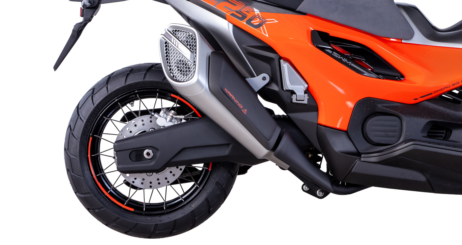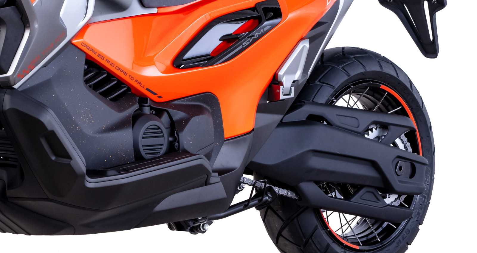 Tο σύστημα πέδησης διαθέτει ABS, ενώ όλες οι απαραίτητες πληροφορίες του scooter είναι διαθέσιμες στον αναβάτη μέσω μίας οθόνης LCD. Η φόρτιση του smartphone γίνεται με ευκολία μέσω μιας USB πρίζας, ενώ ο χώρος κάτω από τη σέλα μπορεί να αποθηκεύσει ένα κράνος τύπου jet. Το επίπεδο πάτωμα και ένας πρακτικός γάντζος επιτρέπουν επίσης τη μεταφορά μεγάλων χειραποσκευών.