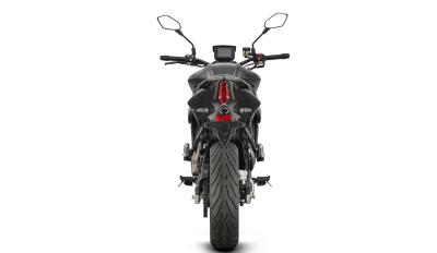 Αιχμές παντού, χαμηλός επιθετικός προβολέας, κουρμπαριστό ψαλίδι, εξάτμιση με κοντό τελικό κάτω από τον κινητήρα, σέλα δυο επιπέδων που θυμίζει μονόσελο, ανεστραμμένο πιρούνι σεβαστών διαστάσεων (43 mm), και αντίστοιχα εντυπωσιακές ακτινικές τετραπίστονες δαγκάνες που πιάνουν σε δίσκους 320 mm μπροστά, κάνουν εντύπωση με την πρώτη εμφάνιση.