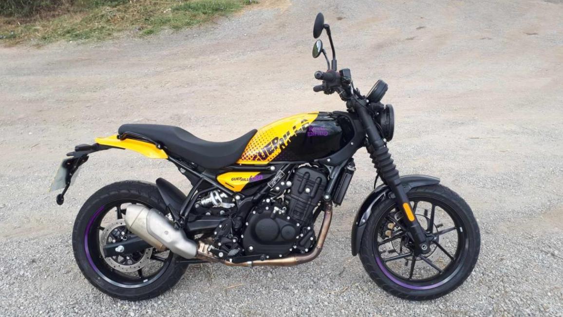 Σε σχέση με το Himalayan, το Guerrilla έχει δεχθεί πολλές αλλαγές, με νέα εμφάνιση σε roadster / scrambler πρότυπα, νέα εργονομία, νέο ρεζερβουάρ, νέα πλαστικά, συμβατικό πιρούνι 43 mm με φυσούνες και διαδρομή 140 mm, μονό αμορτισέρ πίσω με μοχλικό και διαδρομή 150 mm, διαφορετική σέλα, και το ίδιο ψηφιακό TFT έγχρωμο στρογγυλό όργανο με πλοήγηση με χάρτες που είδαμε στην On-Off ινδική μοτοσυκλέτα. Οι τροχοί είναι 17 ιντσών, χυτοί με μπράτσα (αντί για τους ακτινωτούς των 21 και 17 ιντσών του Himalayan), τα ελαστικά έχουν διαστάσεις 120/70-17 και 160/60-17, ενώ στα φρένα βρίσκουμε έναν δίσκο μπροστά 310 mm με διπίστονη δαγκάνα κι έναν ακόμα δίσκο 270 mm πίσω με δαγκάνα ενός εμβόλου. Φυσικά το δικάναλο ABS ανήκει στον στάνταρ εξοπλισμό.