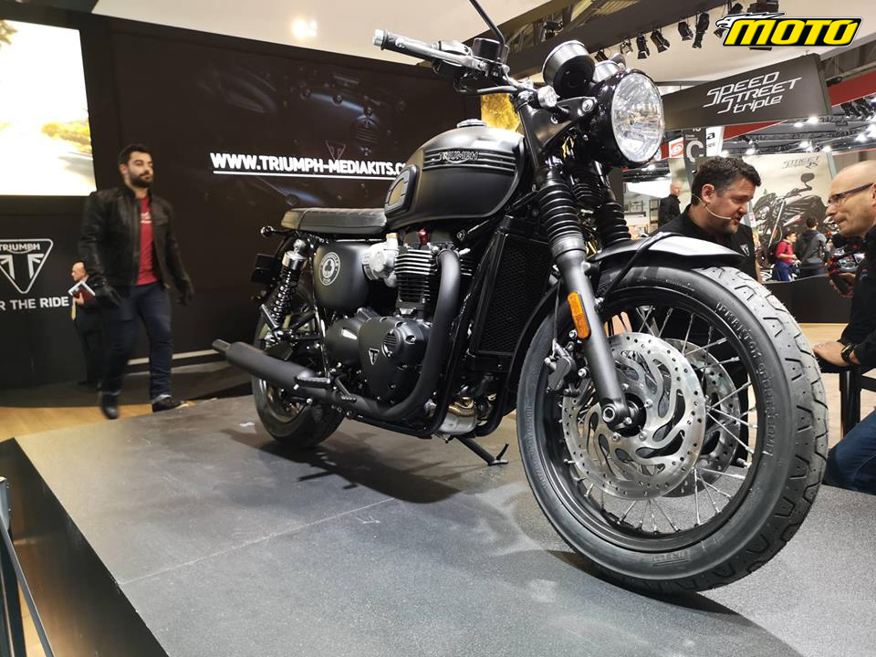 Στην παρουσίαση της Triumph, πέρα από τις δύο νέες Scrambler 1200 για τις οποίες είχαν διαρρεύσει οι πληροφορίες λίγες μέρες πριν την EICMA, το ενδιαφέρον συγκέντρωσαν δύο σπέσιαλ εκδόσεις, περιορισμένης παραγωγής, του Bonneville T120.