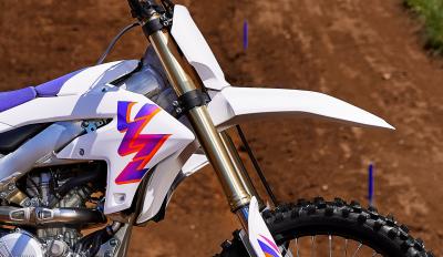 Η νέα YZ250F 50th Anniversary Edition γιορτάζει αυτό το σημαντικό κεφάλαιο στην ιστορία της YZ και τιμά τον πρώτο τίτλο της Yamaha στο Παγκόσμιο Πρωτάθλημα Motocross. Με έναν αποκλειστικό ιστορικό συνδυασμό χρωμάτων που αντλεί έμπνευση από τη δεκαετία του 1990, καθώς και με όλη την προηγμένη τεχνολογία που διαθέτει η νέας γενιάς YZ250F, αυτή η 50th Anniversary Edition δίνει στους αναβάτες την ευκαιρία, να αποκτήσουν μια αποκλειστική μοτοσυκλέτα. Το λευκό χρώμα συνδυάζεται με μωβ/ροζ γραφικά σε ρετρό στυλ, ενώ η μωβ σέλα και οι μαύροι τροχοί συμπληρώνουν την εικόνα μιας επετειακής μοτοσυκλέτας με πολύ ιδιαίτερη εμφάνιση.