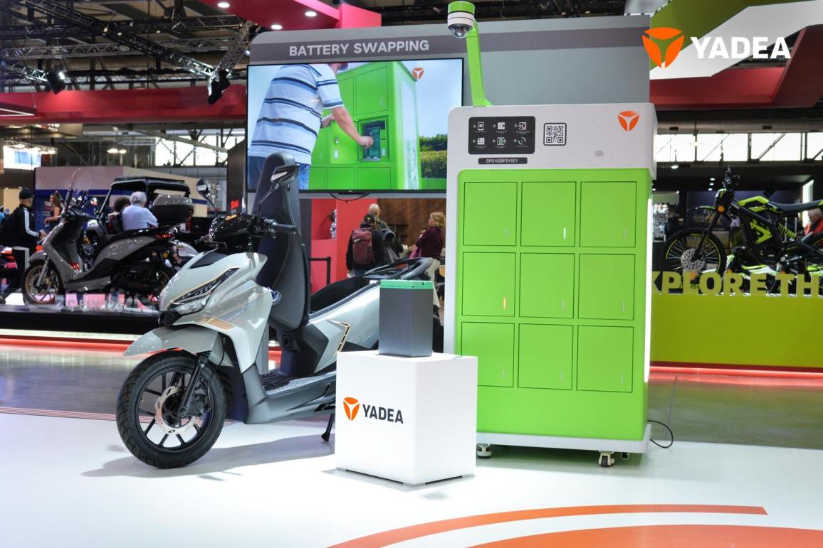 Στην EICMA η Yadea παρουσίασε και το οικοσύστημα που έχει δημιουργήσει για τα ηλεκτρικά της μοντέλα με σταθμούς ανταλλαγής μπαταριών που λειτουργούν 24 ώρες το 24ωρο όλη την εβδομάδα, όπως και μία νέα μπαταρία που μπορεί να λειτουργήσει με -20 βαθμούς Κελσίου.