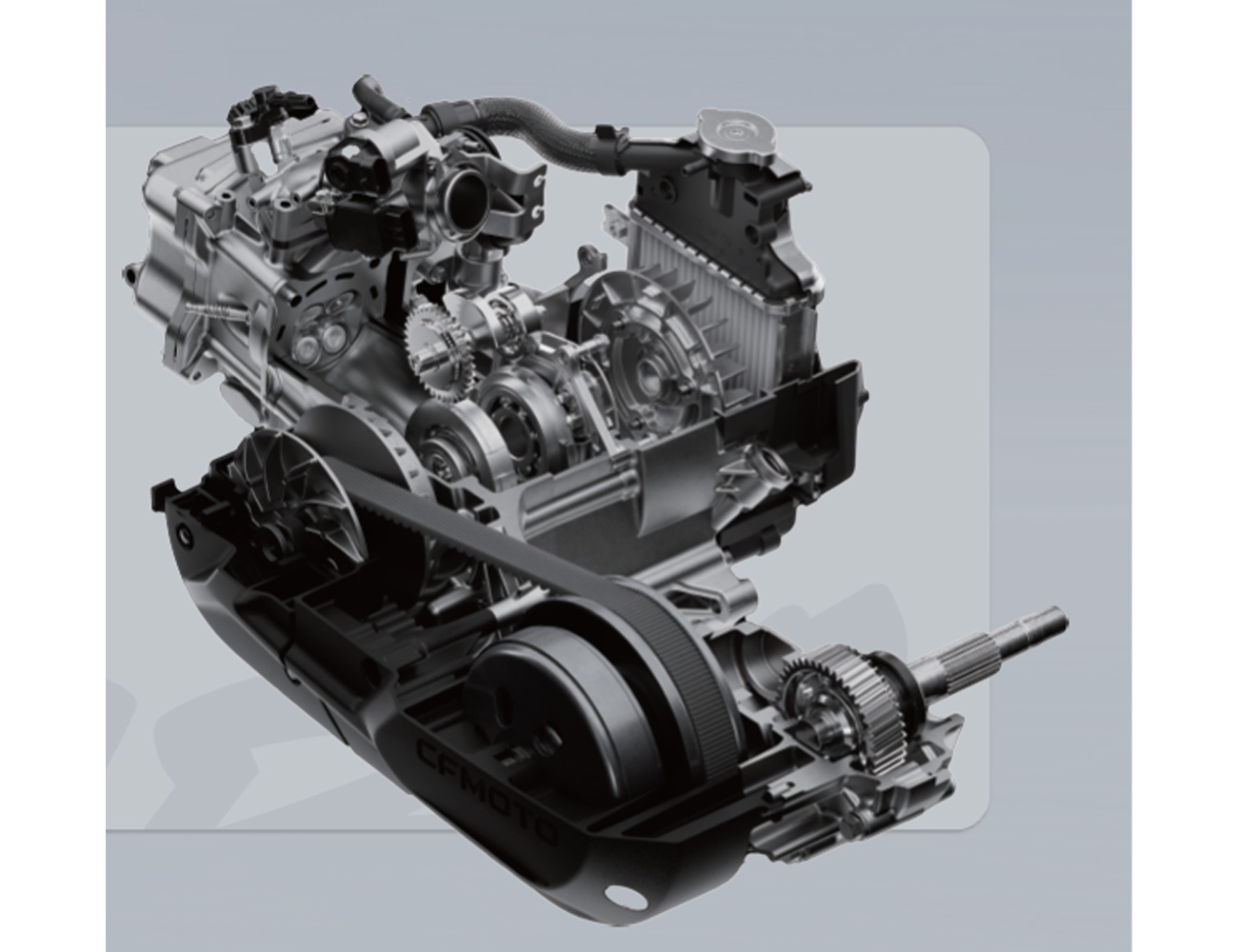 Ο υγρόψυκτος, μονοκύλινδρος, τετραβάλβιδος των 149,5 κυβικών έχει κλασσική διάταξη για σκούτερ με την CFMOTO να υπόσχεται πολύ ομαλή απόκριση αλλά υψηλή ιπποδύναμη πάνω από το βασικό πλαίσιο του ανταγωνισμού, την ίδια στιγμή που έχει αθόρυβη λειτουργία και εξαιρετικά χαμηλή κατανάλωση. Τον παρουσιάζουν λοιπόν ως έναν από τους πλέον εξελιγμένους κινητήρες στην κατηγορία του.