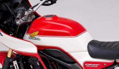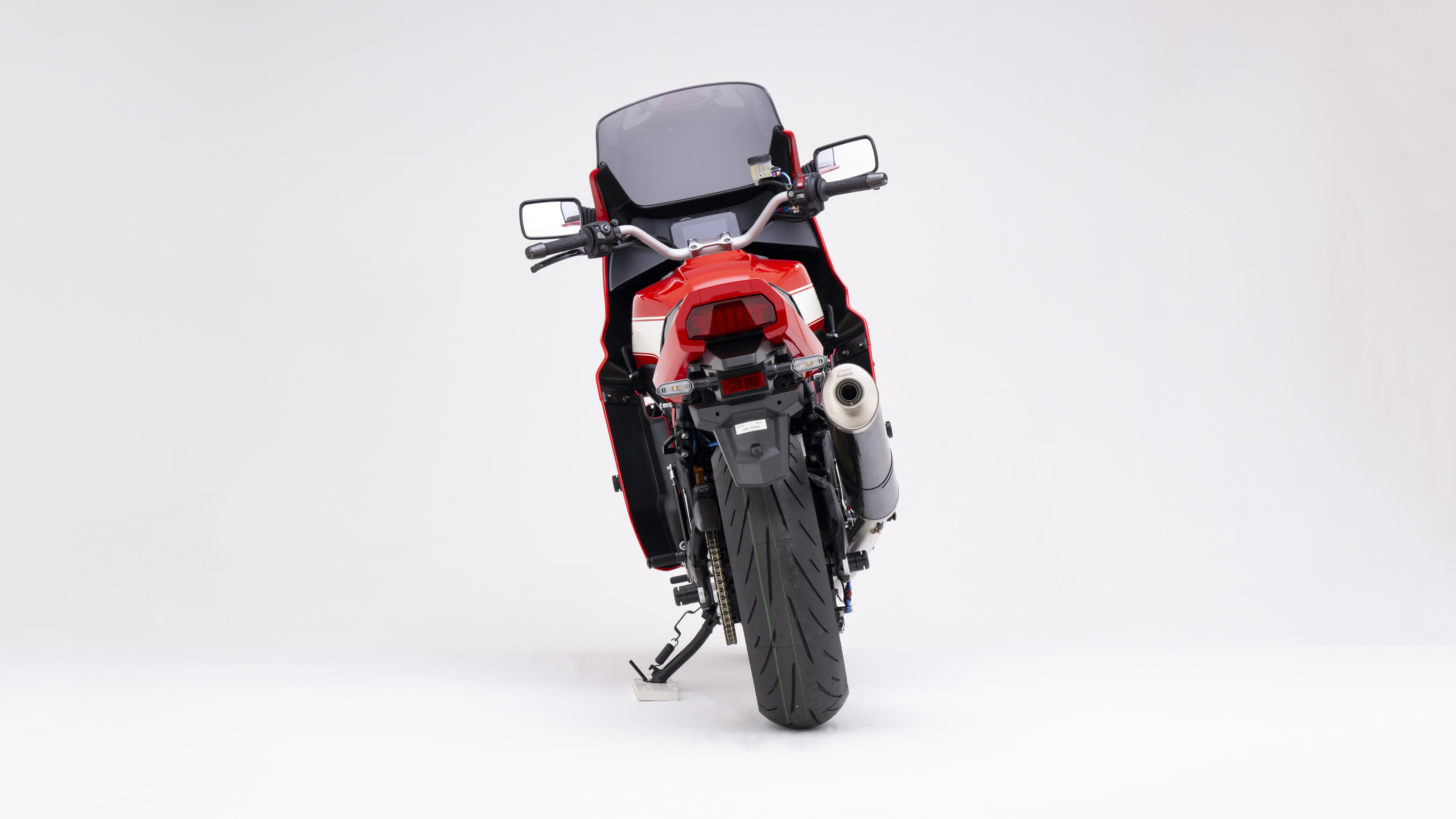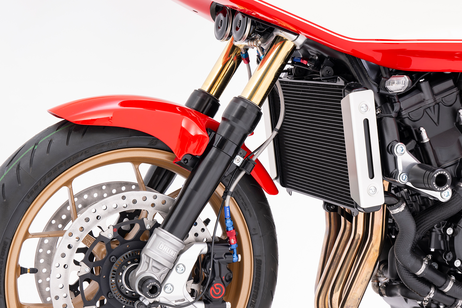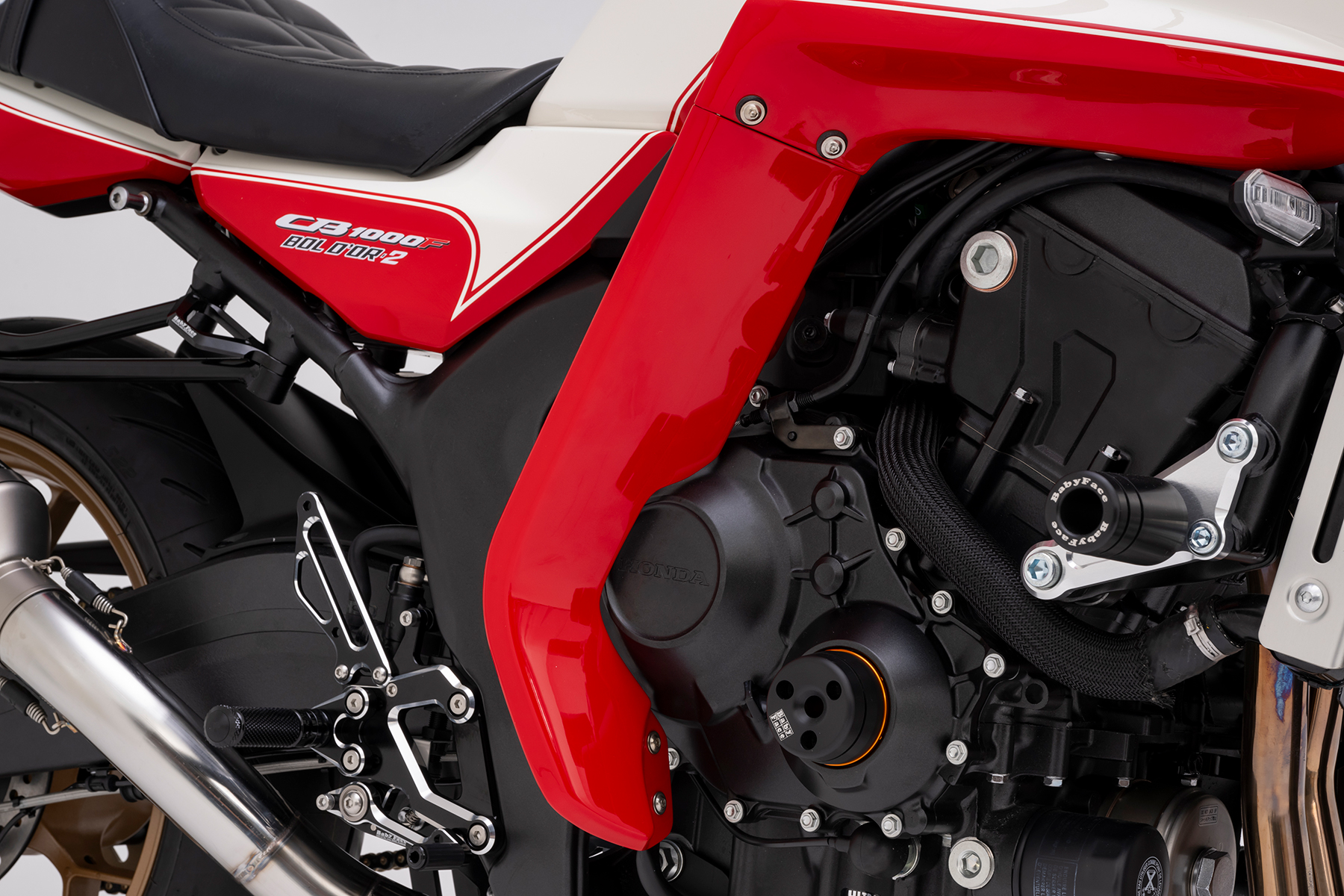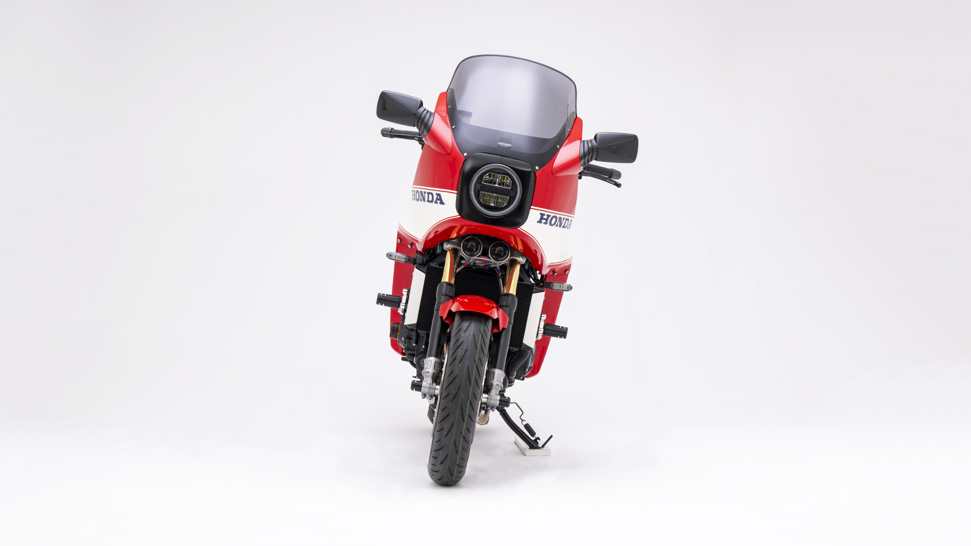 Η λευκή και κόκκινη βαφή στο φαίρινγκ, το ρεζερβουάρ, το φτερό, τα πλαϊνά καλύμματα και την ουρά αποτελεί δημιουργία της Tonnappu Paintworks, η οποία δεν παρέλειψε να προσθέσει και το χρυσό φτερό της Honda στο ρεζερβουάρ.
