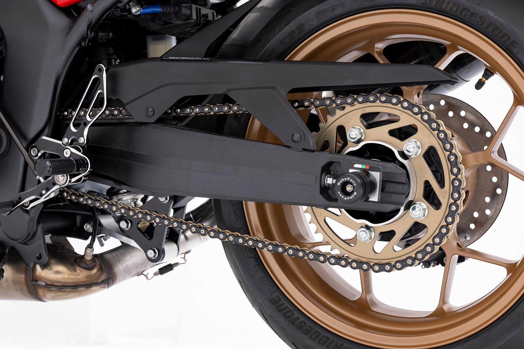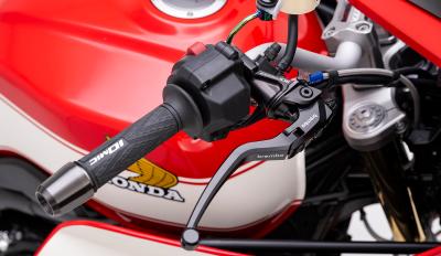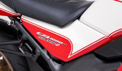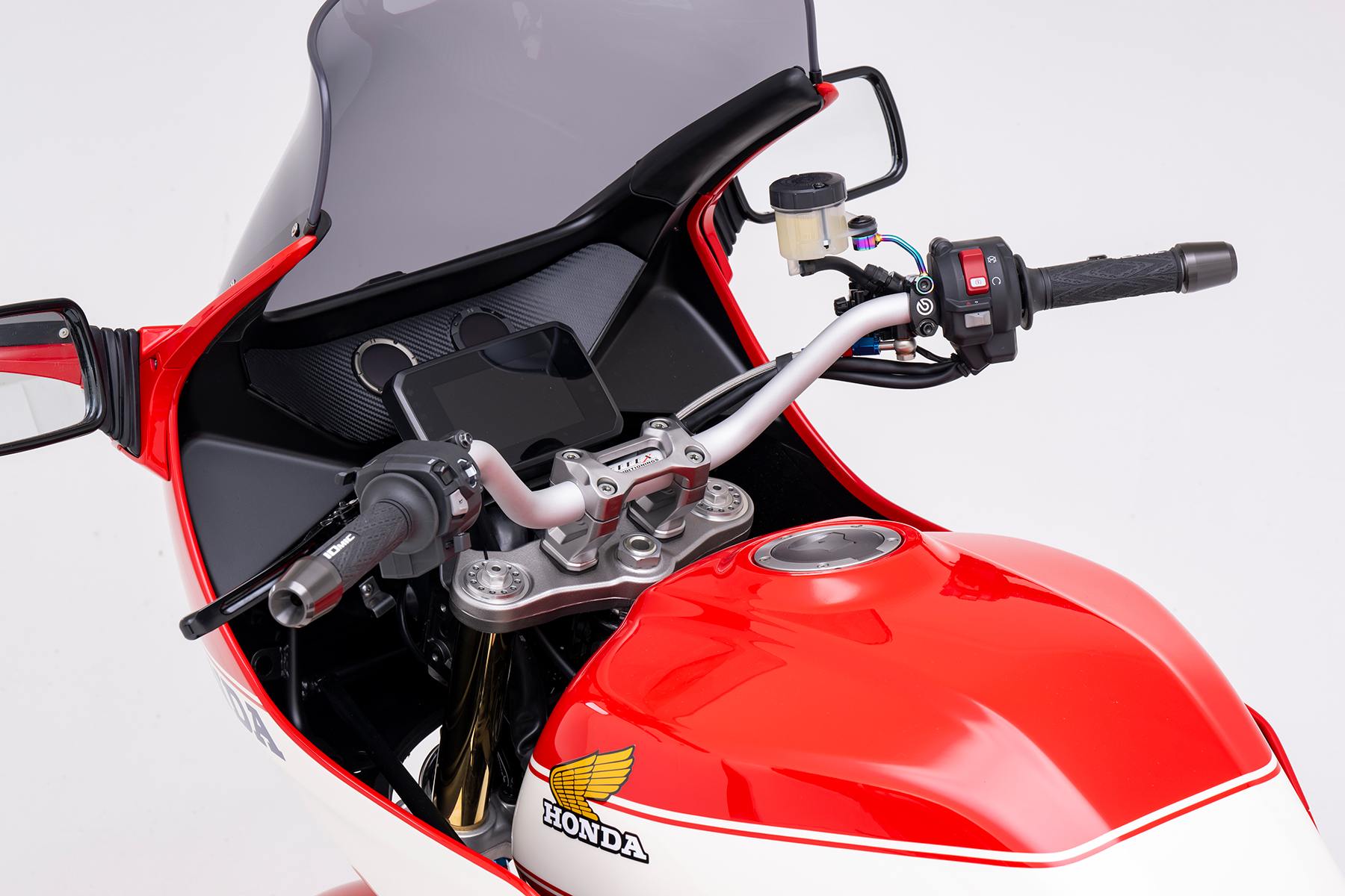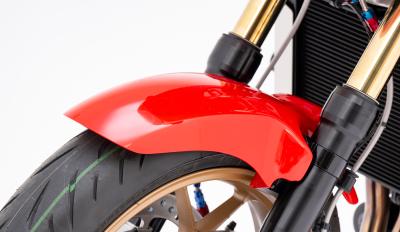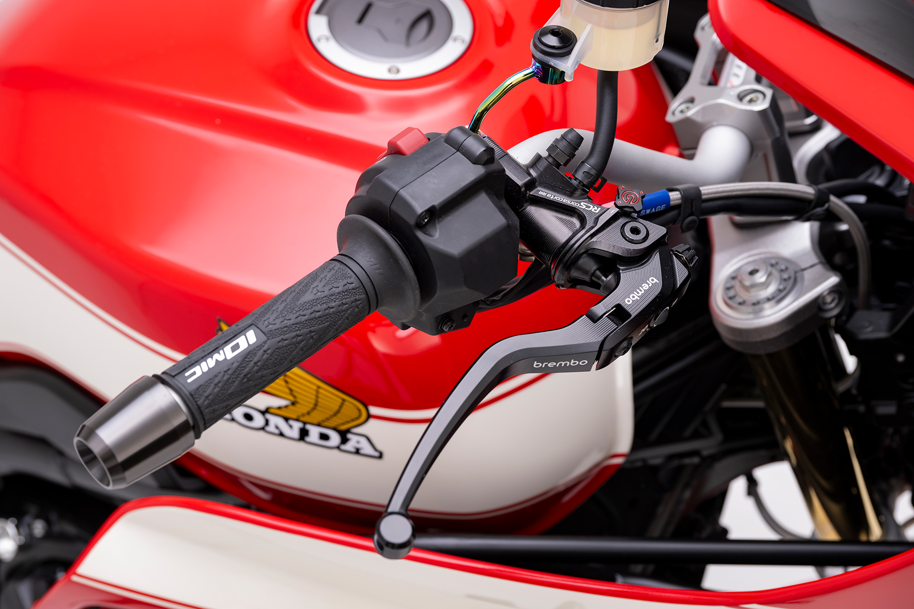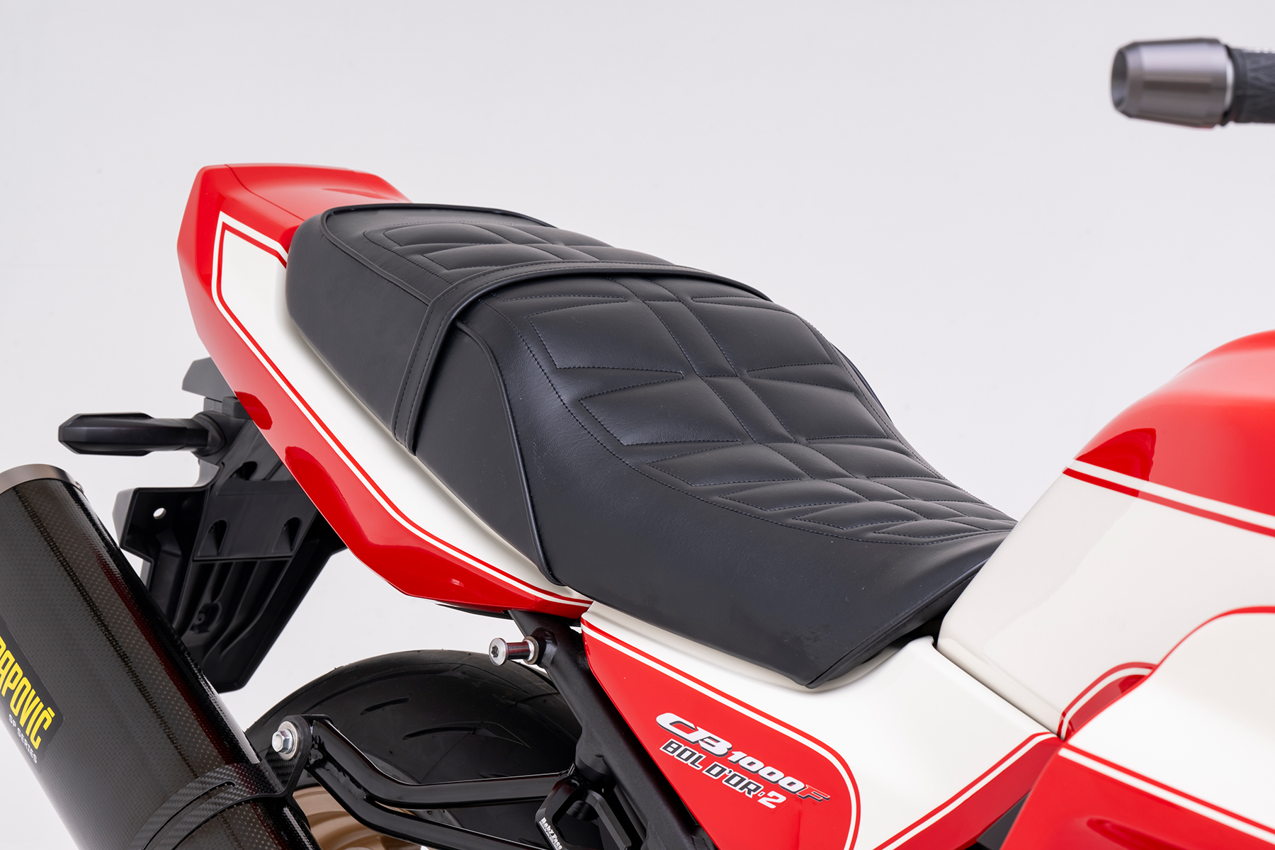 Η λευκή και κόκκινη βαφή στο φαίρινγκ, το ρεζερβουάρ, το φτερό, τα πλαϊνά καλύμματα και την ουρά αποτελεί δημιουργία της Tonnappu Paintworks, η οποία δεν παρέλειψε να προσθέσει και το χρυσό φτερό της Honda στο ρεζερβουάρ.