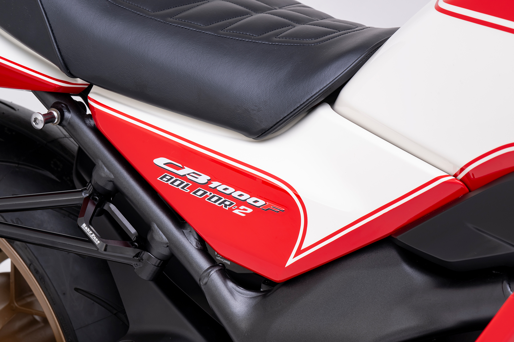 Το custom CB1000F της Plot αναβιώνει το Bol D’Or της δεκαετίας του 1980, με το μεγάλο μισό φαίρινγκ, την κόκκινη-λευκή βαφή, και το χρυσό φτερό της Honda στο ρεζερβουάρ, κάνοντας και μια σημαντική αλλαγή στα δομικά χαρακτηριστικά της νέας μοτοσυκλέτας με την αντικατάσταση του ανεστραμμένου πιρουνιού με ένα συμβατικό της Ohlins.
