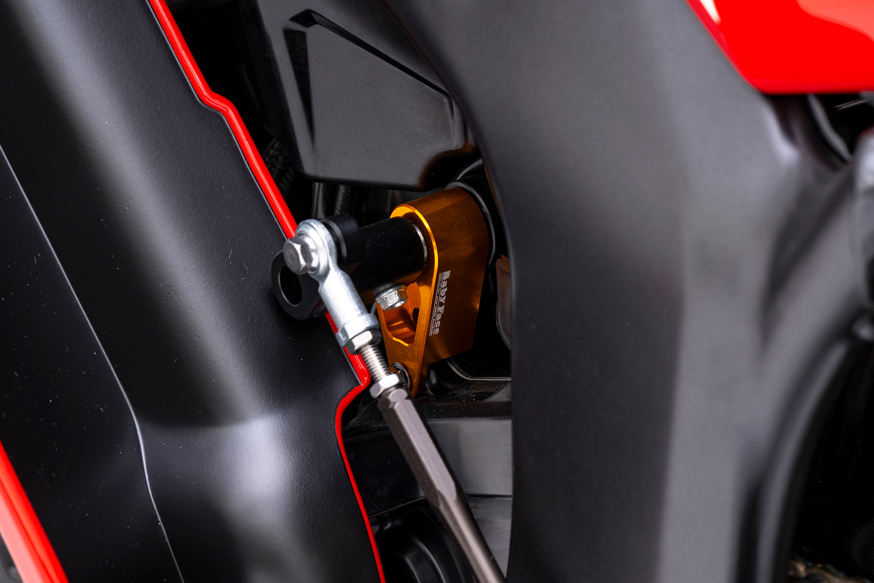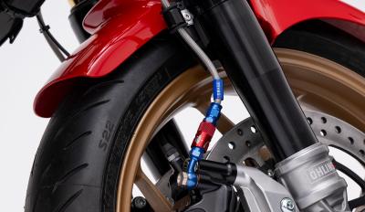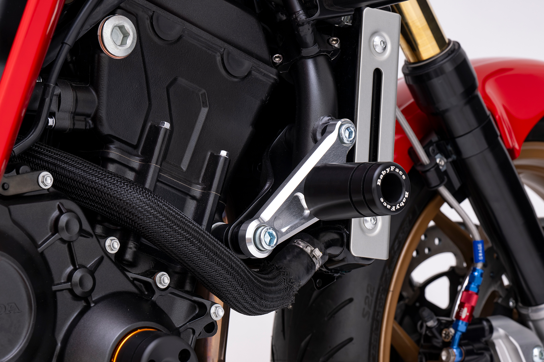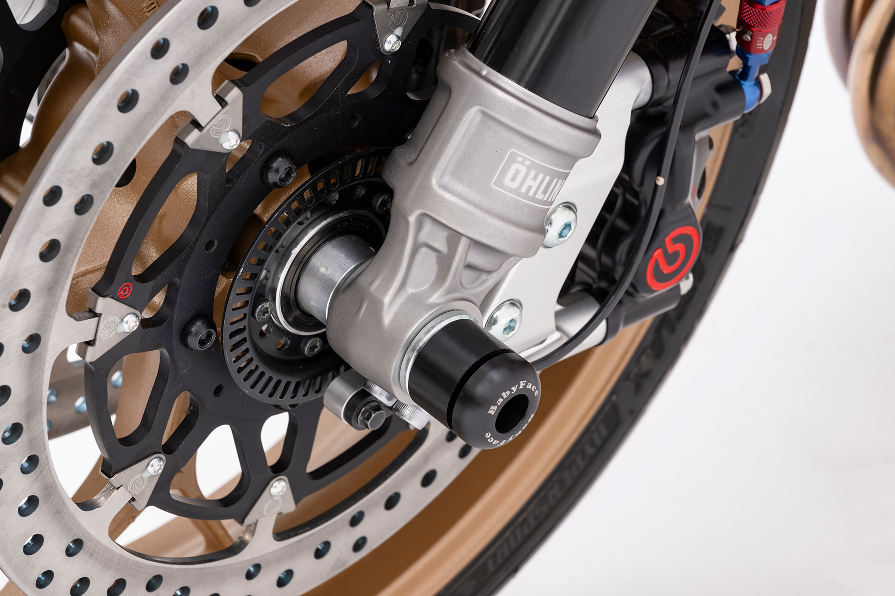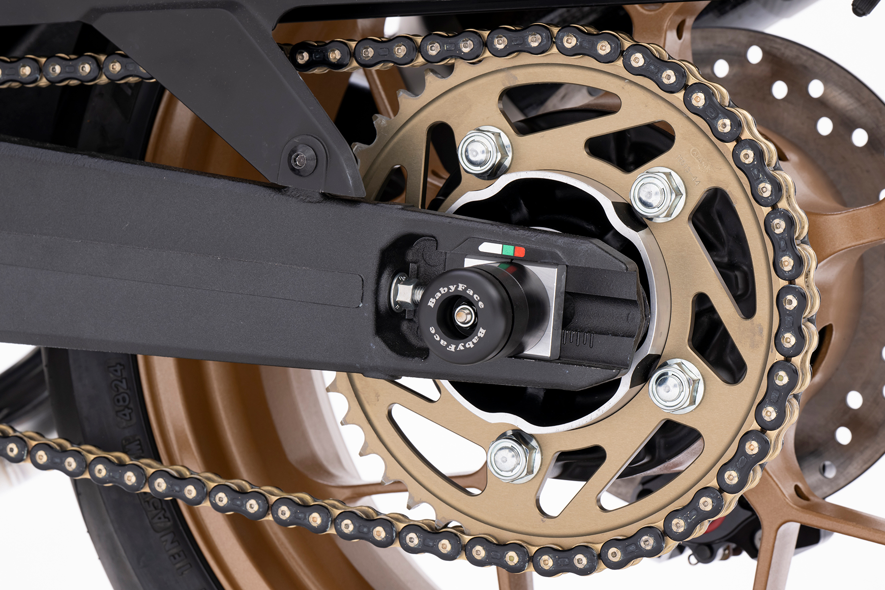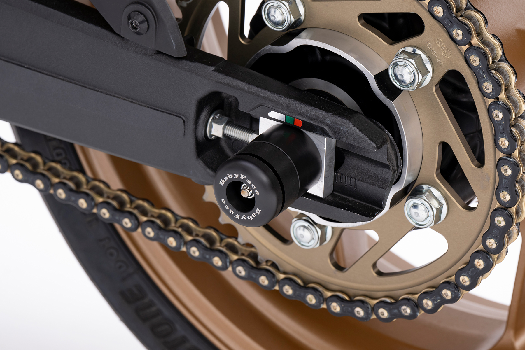 Στη μοτοσυκλέτα έχουν προσαρμοστεί μανιτάρια και προστατευτικά της Babyface, ενώ υπάρχει και παραδοσιακή κλειδαριά κράνους στο υποπλαίσιο από την ίδια εταιρεία!