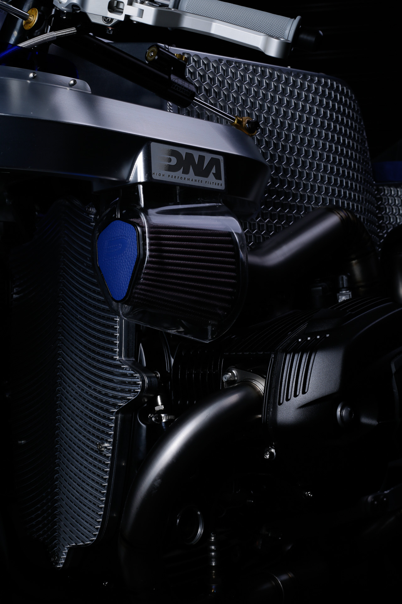 Η DNA δεν ξεχνά ποτέ ότι είναι μια εταιρεία που εξειδικεύεται στην αύξηση της απόδοσης των κινητήρων και όπως ήταν φυσικό, ο boxer κινητήρας του R9T δέχτηκε τις απαραίτητες περιποιήσεις. Στόχος του Ντίνου και του Μάριου ήταν μια υγιής αύξηση 10-15 ίππων. Ένα ζευγάρι φιλτροχοάνες 66mm από την βραβευμένη με Reddot σειρά Leather Top φίλτρων της DNA, βρίσκονται στις άκρες δύο σωλήνων από τιτάνιο διαμέτρου 60mm, έχοντας ταυτόχρονα τον ρόλο του Ram Air.