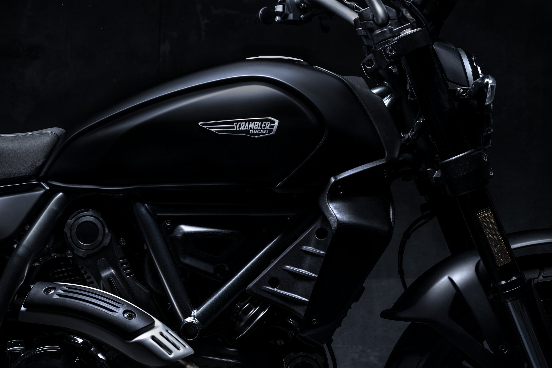 Ως το εισαγωγικό και πιο προσιτό μοντέλο στην γκάμα των "μικρών" Scrambler το Icon Dark αλλάζει "διάθεση" για το 2025 και από τα έντονα χρώματα των προηγούμενων ετών υιοθετεί το μαύρο ματ ως εκείνο που το κάνει να ξεχωρίζει από τα υπόλοιπα μοντέλα τόσο για το ρεζερβουάρ όσο και για το πλαίσιο, το ψαλίδι και το πιρούνι του, αλλά και για τα πλαϊνά καπάκια.