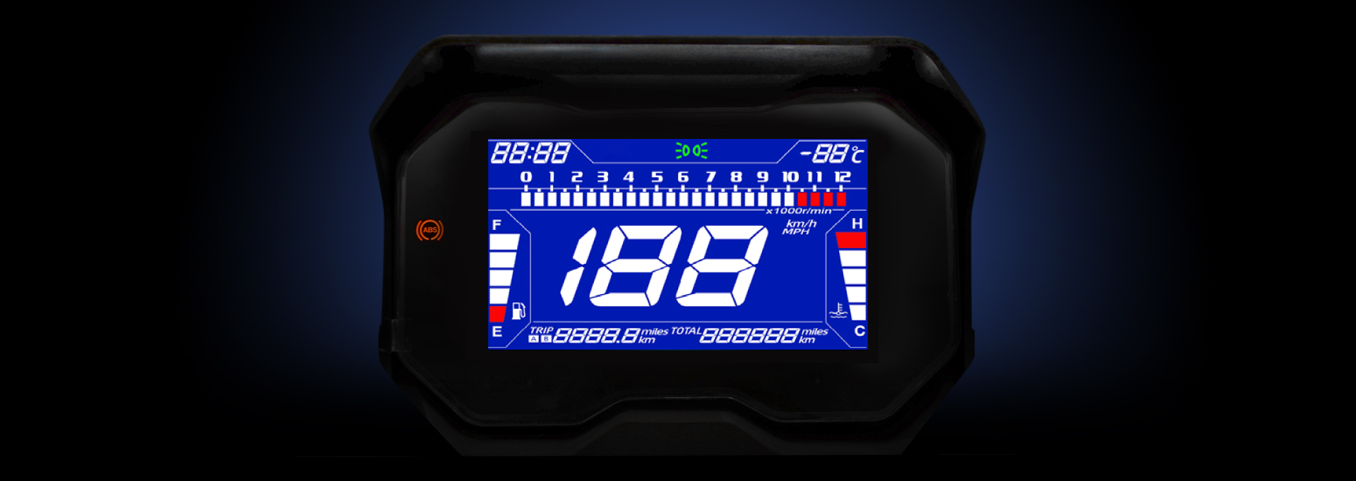 Μια ευμεγέθης LCD οθόνη 7 ιντσών παρέχει εξαιρετική ευκρίνεια ακόμη και όταν οι ακτίνες του ηλίου βρίσκονται κάθετα σε αυτήν. Προβάλλει πλήθος πληροφοριών και ενδείξεων στον αναβάτη, όπως ταχύμετρο, στροφόμετρο, ολικό χιλιομετρητή, δύο μερικούς χιλιομετρητές, θερμοκρασία περιβάλλοντος, θερμοκρασία ψυκτικού υγρού κινητήρα και στάθμη καυσίμου.