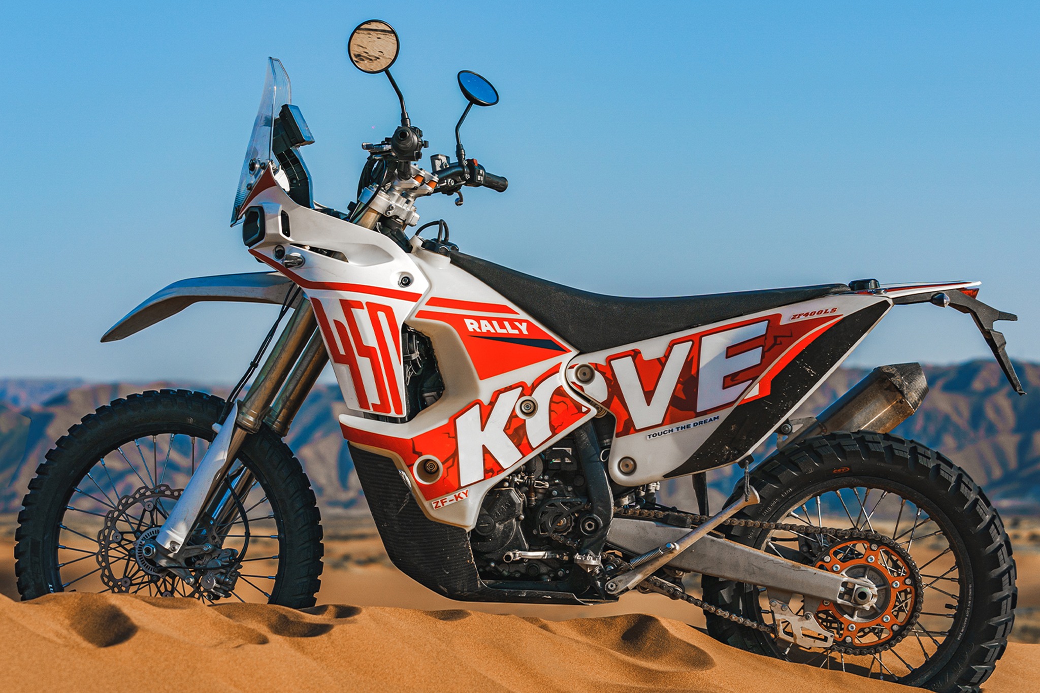 Το 450 rally έχει ρεζερβουάρ 31 λίτρων και απόδοση 53,6 hp / 9.500 rpm, ενώ η KOVE θα δείξει επίσης και μία MX250 μοτοσυκλέτα με απόδοση 40,2 hp / 11.500 rpm, και βάρος 95 kg.
