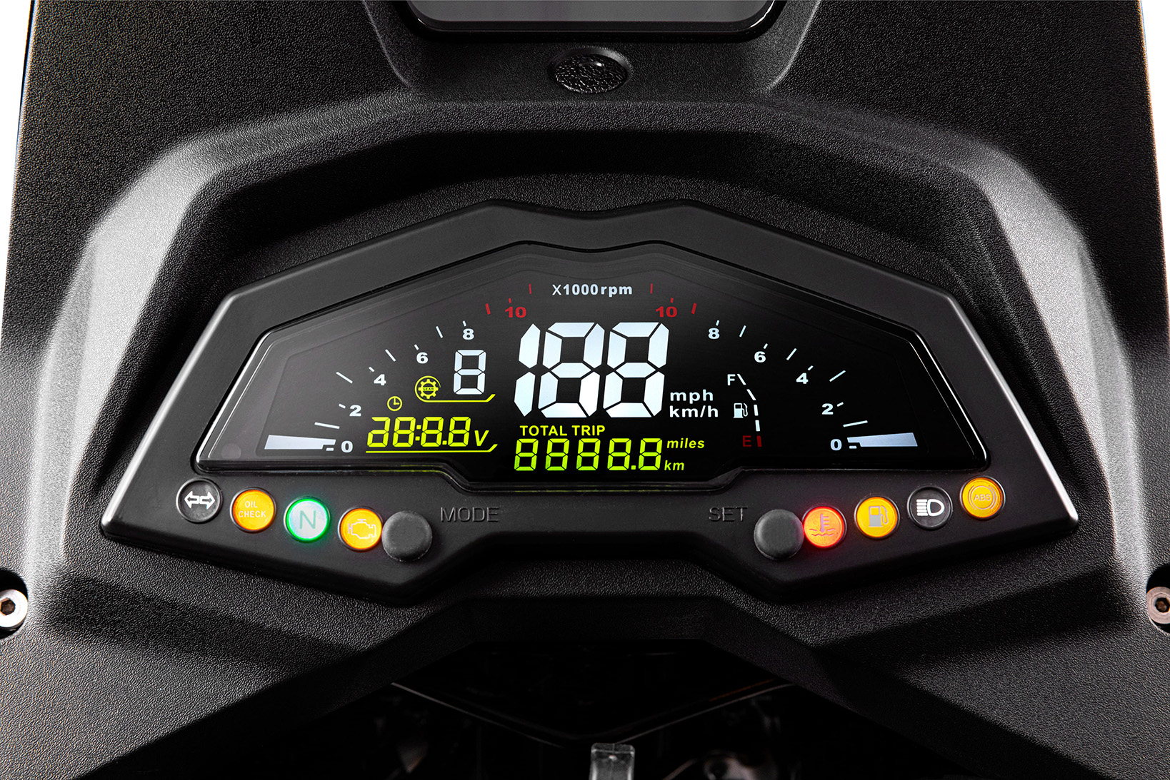 Ο εξοπλισμός της NH-R περιλαμβάνει USB-A και USB-C, έγχρωμη οθόνη LCD, LED φώτα, δικάναλο ABS, ποδιά κινητήρα, προστατευτικά κάγκελα και χούφτες.