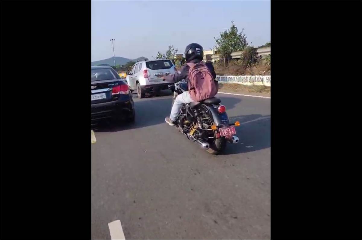 Στις αρχές Σεπτεμβρίου ο κατασκοπικός φακός έπιασε τους δρόμους της Ινδίας μια cruiser μοτοσυκλέτα που είχε τον δικύλινδρο αερόψυκτο κινητήρα των 650 κυβικών της Royal Enfield. Ήδη από τότε η μοτοσυκλέτα ήταν στα τελικά στάδια της εξέλιξης και δεν είχε πάνω της κανενός είδους καμουφλάζ που να εμποδίζει τα μάτια μας να καταλάβουν πως πρόκειται για το τρίτο μοντέλο της οικογένειας. Τώρα όμως εμφανίστηκε άλλη μια φωτογραφία με την μοτοσυκλέτα σταματημένη, που δείχνει ακόμα περισσότερες λεπτομέρειες.