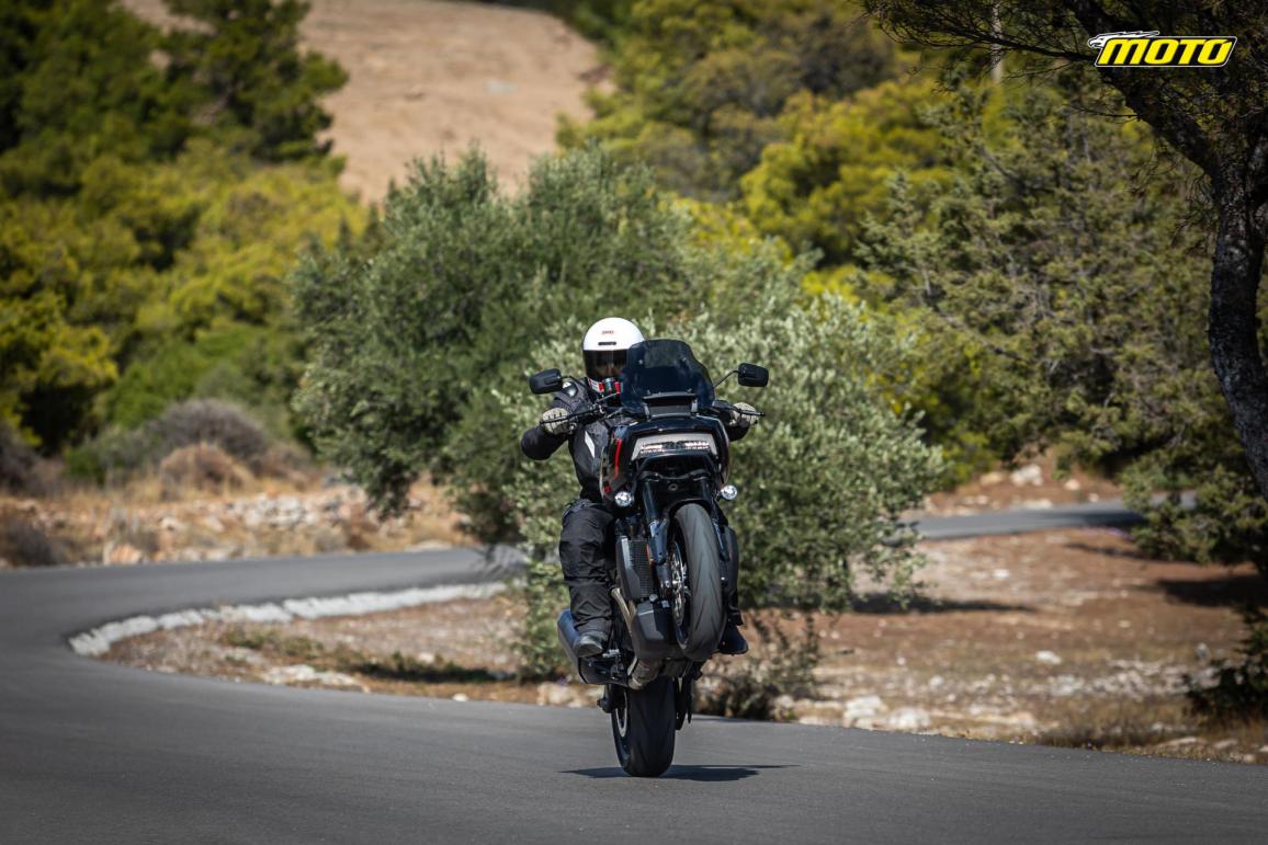 Εμείς οδηγήσαμε και τις τρεις εκδόσεις και προσωπικά ξεχώρισα την έκδοση ST με τους τροχούς των 17 ιντσών που ήταν και η πιο “στριφτερή”, με την αλλαγή κατεύθυνσης να γίνεται χωρίς κόπο. Είναι άλλωστε και η πιο ελαφριά από τις τρεις αφού ζυγίζει 246 κιλά – η Special είναι 258 κιλά και η CVO 299 κιλά. Τα νούμερα δείχνουν αυτό που είχαμε διαπιστώσει κι εμείς στο MEGA TEST ON-OFF, ότι η μοτοσυκλέτα είναι βαριά για να κινηθεί στο χώμα με αξιώσεις.