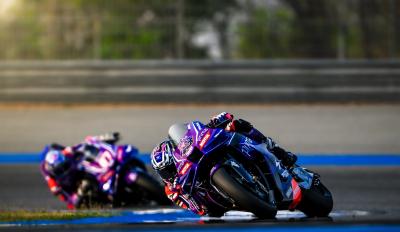Στο στρατόπεδο της Aprilia ο ενθουσιασμός είναι δεδομένος, όσο και δικαιολογημένος. Την πρώτη μέρα του Buriram Test και οι τέσσερεις αναβάτες της ήταν μέσα στην πρώτη δεκάδα, ενώ η ίδια εικόνα διατηρήθηκε και μετά τη δεύτερη μέρα, με μόνη τη διαφορά πως ο πιο αργός αναβάτης με RS-GP, Raul Fernandez, ήταν τώρα 11ος.