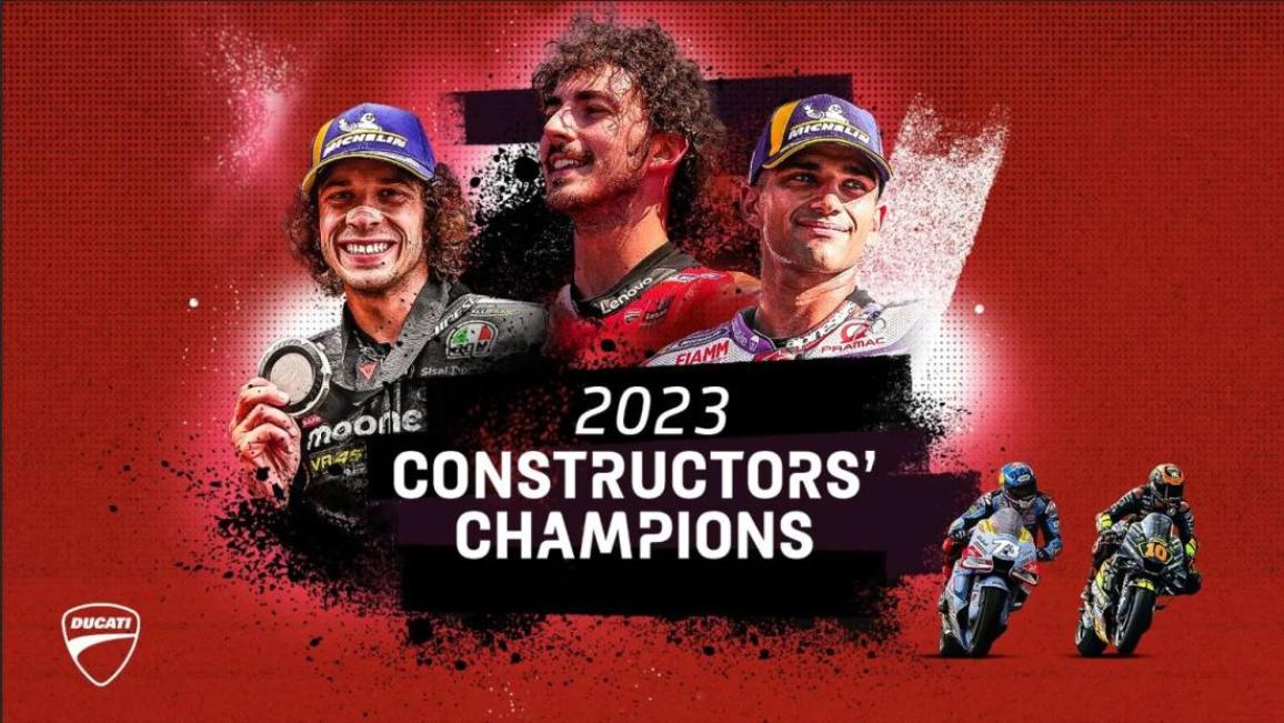 Ξεκινάμε με τον θρίαμβο του Pecco Bagnaia, ο Ιταλός κατάφερε να γίνει ο πρώτος αναβάτης της Ducati ο οποίος κατακτά τον τίτλο του πρωταθλητή back-to-back. Αφήνουμε κατά μέρος τα ατομικά στατιστικά και εστιάζουμε στα ομαδικά. H Ducati στη Valencia κατέκτησε το πέμπτο της πρωτάθλημα κατασκευαστών -2007, 2020, 2021, 2022, 2023- με τον φετινό τίτλο να αποτελεί τον τέταρτο συνεχόμενο. Το 2023 η Ducati είδε τους Pecco Bagnaia, Enea Bastianini (Ducati Lenovo Team), Jorge Martin (Prima Pramac Racing), Marco Bezzecchi (Mooney VR46 Racing Team), Johann Zarco και Fabio Di Giannantonio να κερδίζουν τους κυρίως αγώνες της Κυριακής με την ιταλική εταιρεία να ανεβαίνει 17 φορές από τις 20 στο πρώτο σκαλί του βάθρου.