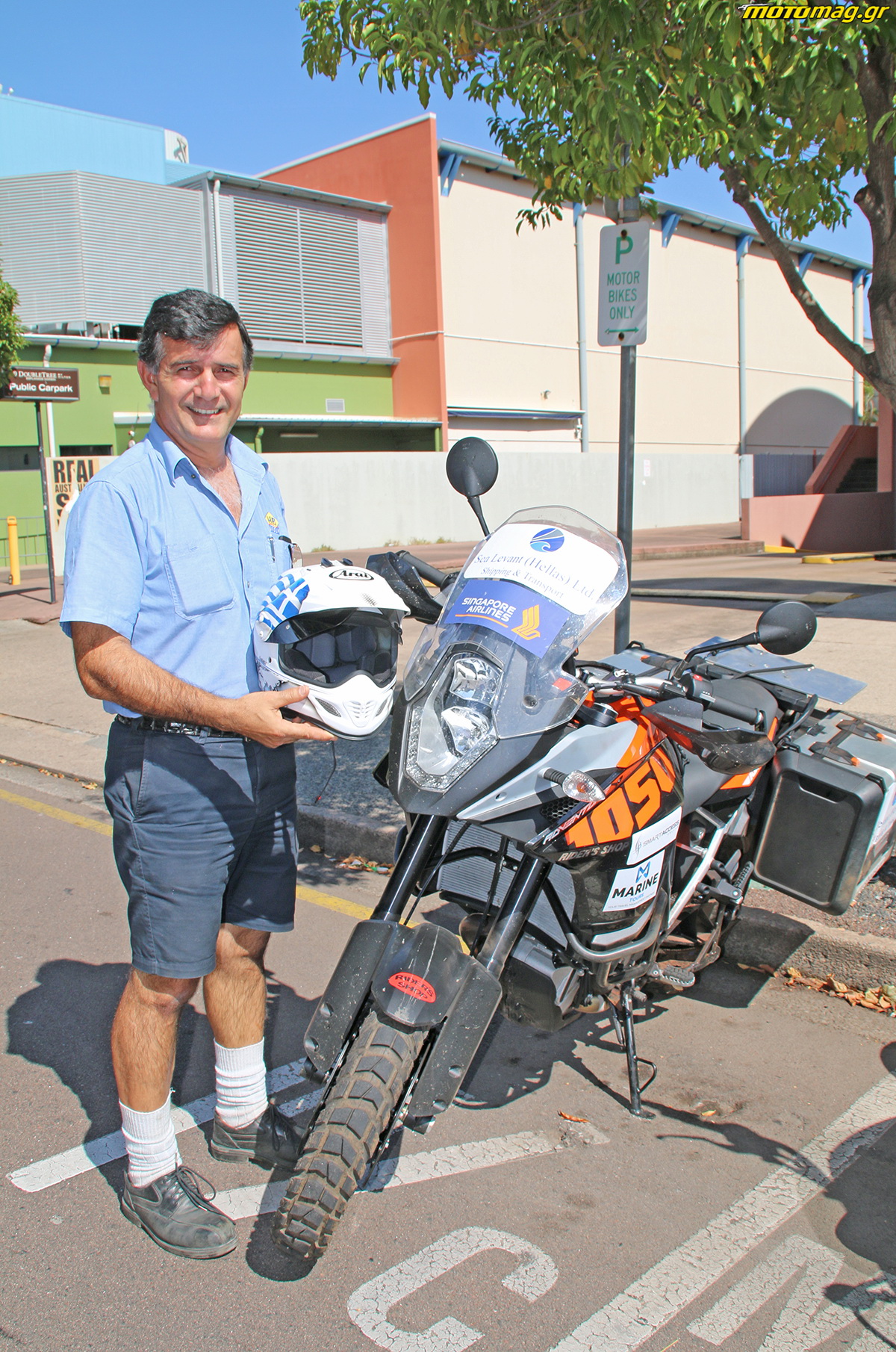 Ο Νικ Χαλκίτης που καθόταν απέναντί μου και πίναμε τις μπύρες μας, εκτός από αντιπρόεδρος της Ελληνικής Κοινότητας της πόλης Darwin, ήταν επίσης οδηγός αγώνων Sprintcars (το μονοθέσιο όχημα που οδηγεί έχει περίπου 680 ίππους) και λάτρης των δυο τροχών (στο γκαράζ του είχε μια συλλεκτική Ducati 1198 και μια Harley-Davidson Ultra Glide). Ανταποκρινόμενος άμεσα στο τηλεφωνικό μου κάλεσμα, ήρθε να με συναντήσει σε μια παμπ στο κέντρο της πόλης, καθώς ήθελε οπωσδήποτε να με γνωρίσει.