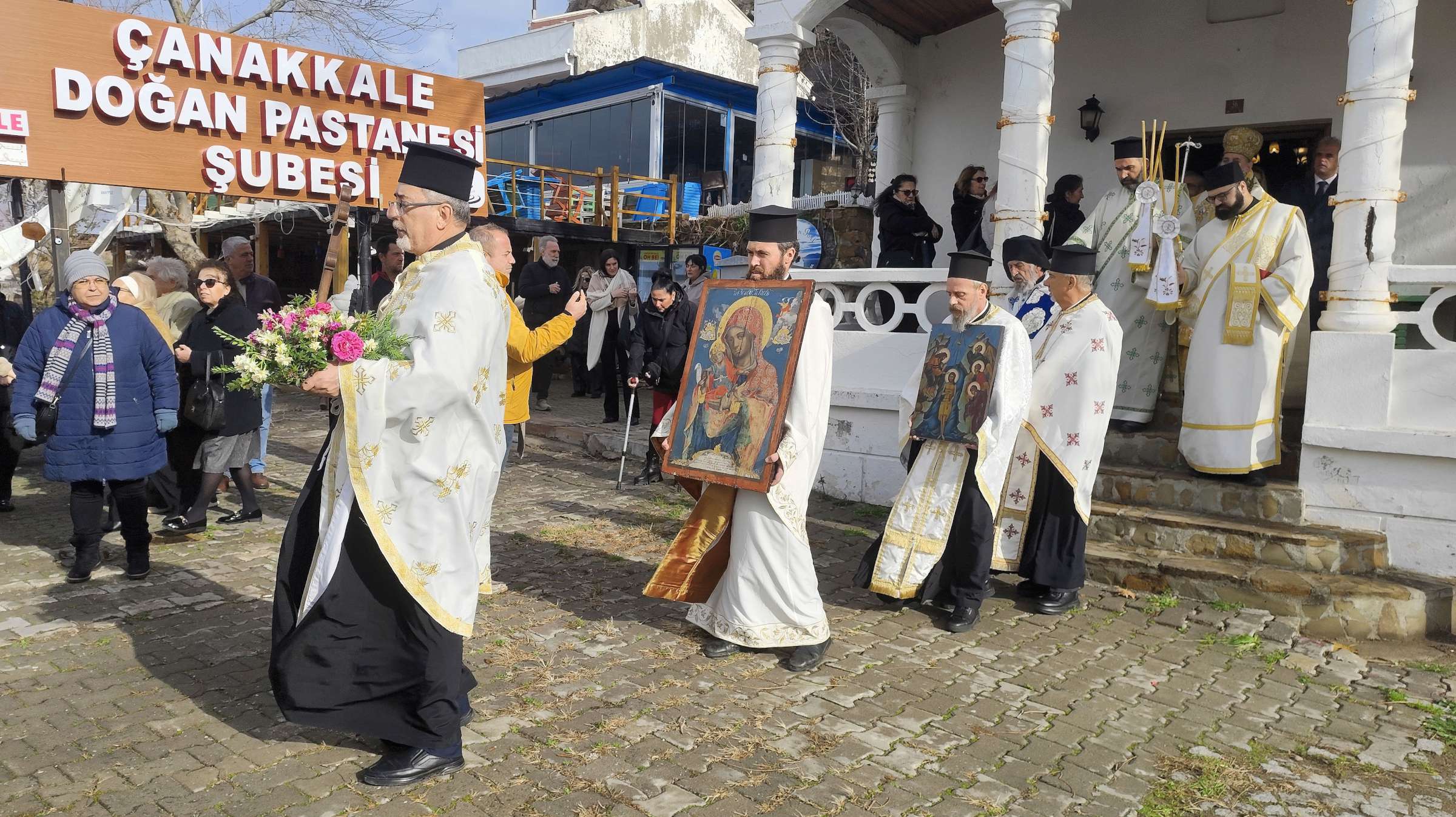 Η παρουσία μου στην Ίμβρο συνέπεσε με τον Αγιασμό των Υδάτων (Θεοφάνια), που πραγματοποιήθηκε στο λιμάνι του Κάστρου. Στην τελετή του αγιασμού χοροστάτησε ο Μητροπολίτης Ίμβρου & Τενέδου Κύριλλος, πλαισιωμένος από τον τοπικό κλήρο, τον δήμαρχο Μυτιλήνης Π. Χριστόφα κι από δεκάδες Ρωμιούς κατοίκους του νησιού. Με βαθιά κατάνυξη παρακολούθησα την τελετή του αγιασμού, η οποία, εκτός φυσικά από κορυφαίο θρησκευτικό έθιμο, αντιπροσώπευε παράλληλα μια πράξη συλλογικής ταυτότητας και αφύπνισης για τους Έλληνες της Ίμβρου, οι οποίοι εξακολουθούν να στέκονται όρθιοι απέναντι στον χρόνο και στις αντιξοότητες που σημάδεψαν τον τόπο τους…