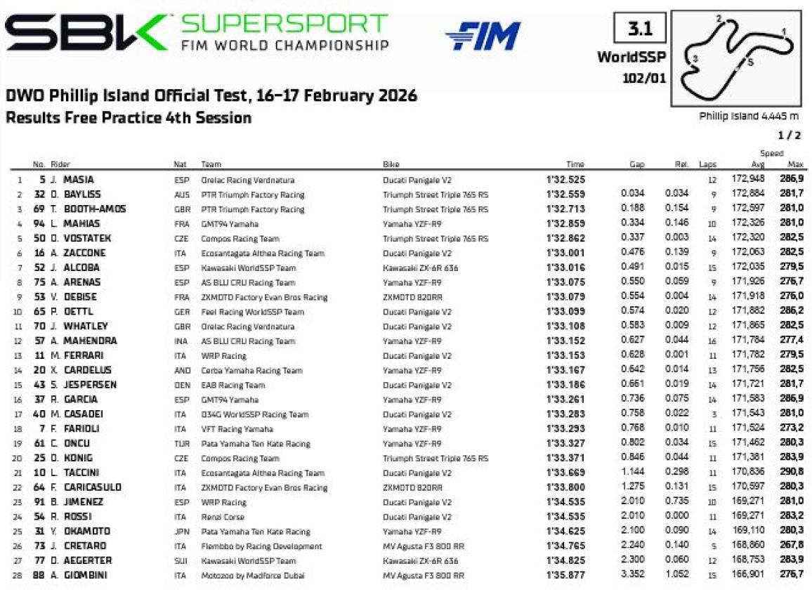 MOTUL WSSP 2026 Phillip Island Test: Jaume Masia και Ducati Panigale V2 στην κορυφή