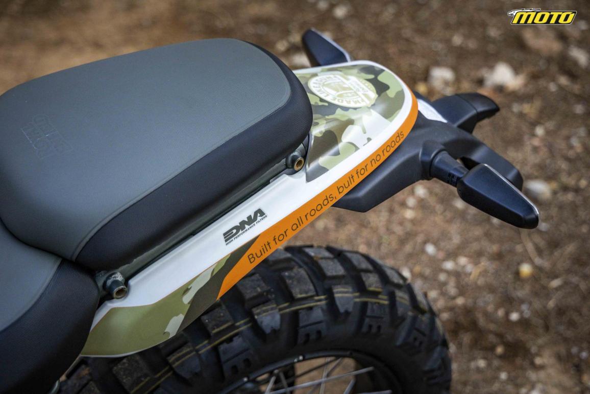 Επίσης το Himalayan φέρει όλες τις προστασίες που μπορεί να βρει κανείς στον επίσημο κατάλογο με αξεσουάρ της ινδικής εταιρείας, όπως είναι εκείνες για το ψυγείο και το πλαίσιο. Αυτά που θα αφαιρεθούν πριν από τον αγώνα είναι το διπλό και το πλαϊνό σταντ, ενώ ακόμη και η σέλα θα παραμείνει η διπλή εργοστασιακή.