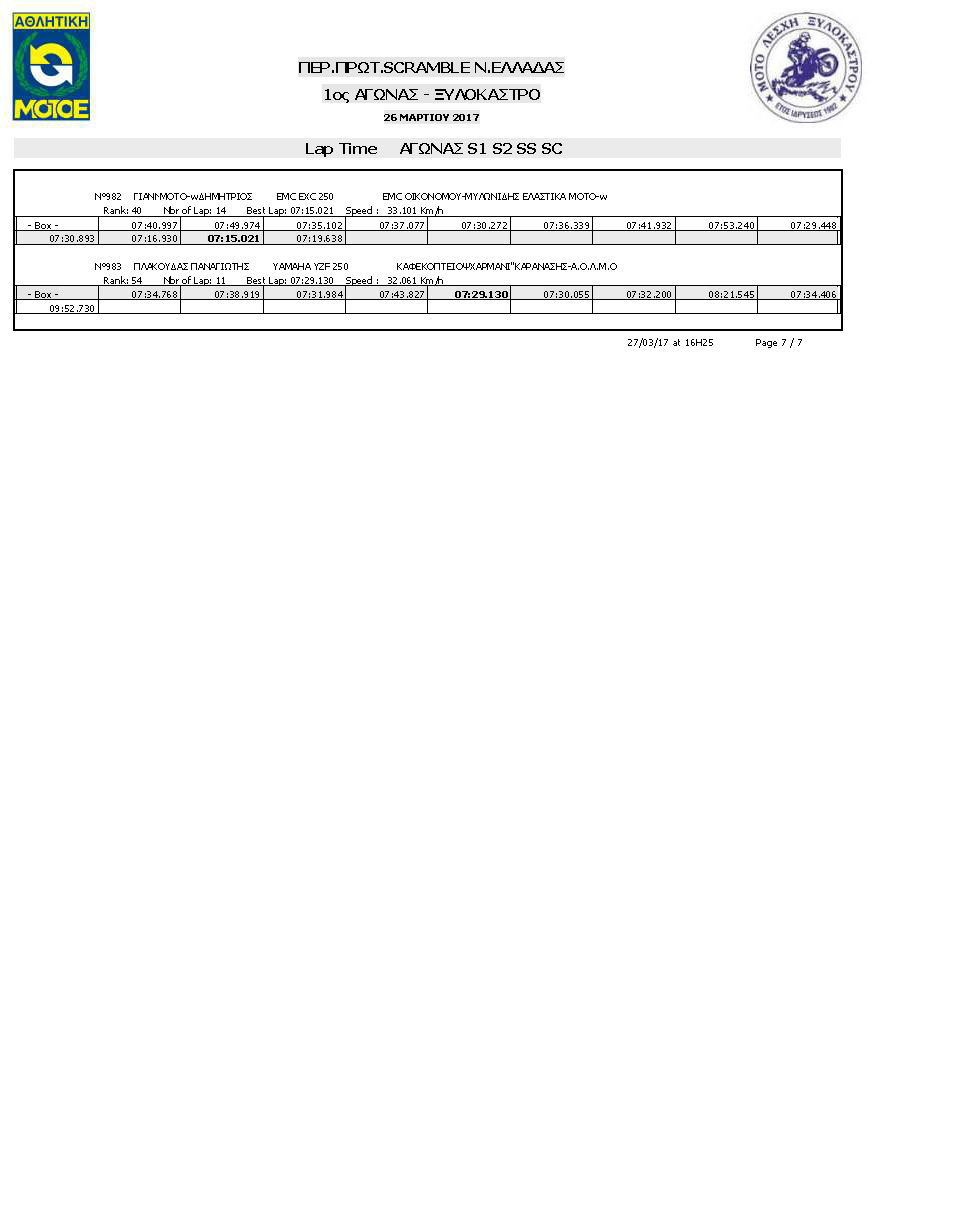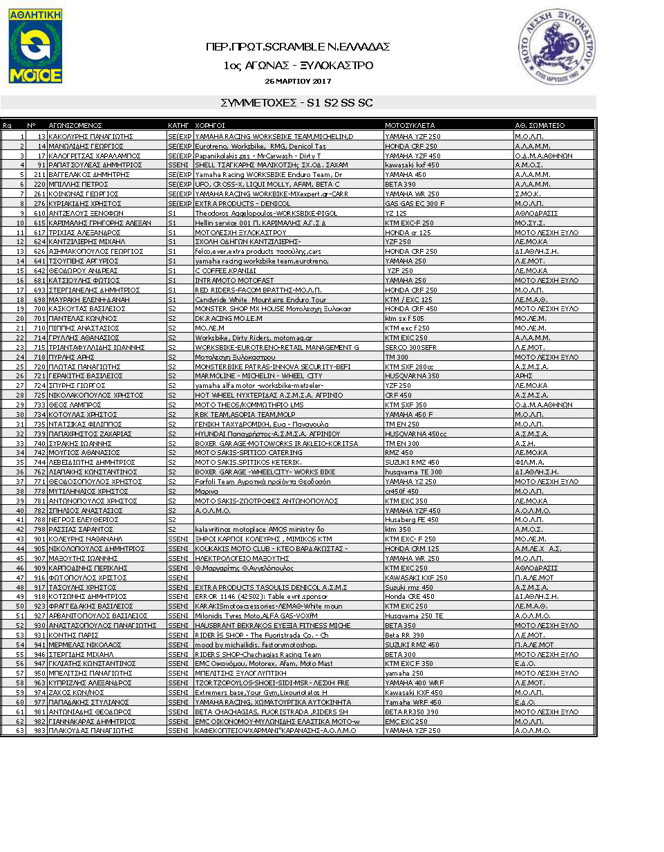 Με ευνοϊκές συνθήκες από τον καιρό και αρκετές συμμετοχές, έγινε η εκκίνηση του Περ.Πρωτ. SCRAMBLE Ν.Ελλάδας στο Ξυλόκαστρο Κορινθίας, αν και στον αγώνα υπήρξαν τραυματισμοί αναβατών και προβλήματα στην οργάνωση με την σήμανση αλλά και την ίδια την διαδρομή, καθώς και αργότερα με τα αποτελέσματα του αγώνα, που χάθηκαν θέσεις από πολλούς αναβάτες.