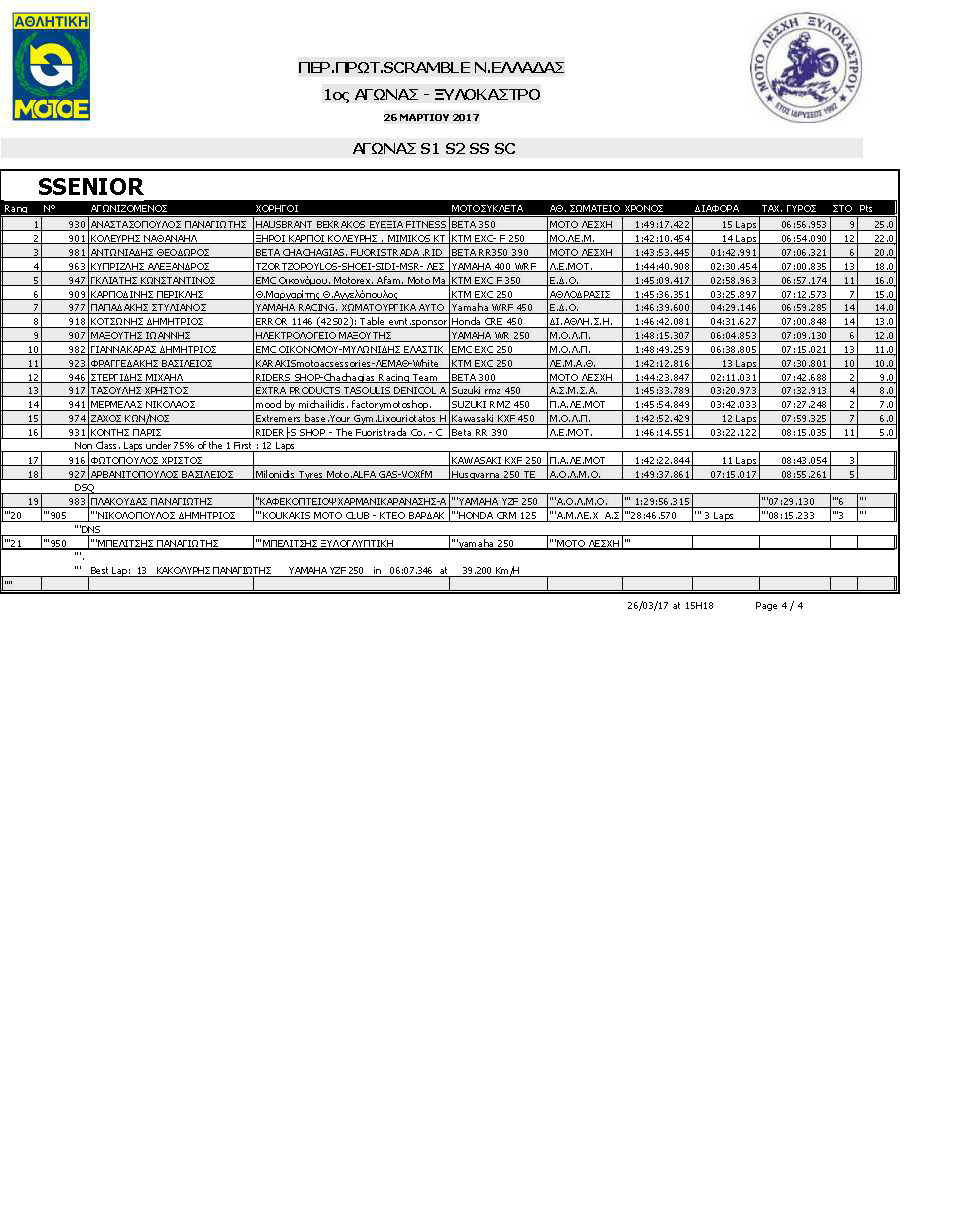 Με προβλήματα λοιπόν η έναρξη του Περ.Πρωτ. SCRAMBLE Ν.Ελλάδας, τραυματισμούς και παράπονα για χαμένες θέσεις στην κατάταξη. Αναγνωρίζουμε την διάθεση για καλύτερους αγώνες από τις λέσχες, και ευχόμαστε γρήγορη βελτίωση στον επόμενο αγώνα, στο Λουτράκι Κορινθίας.