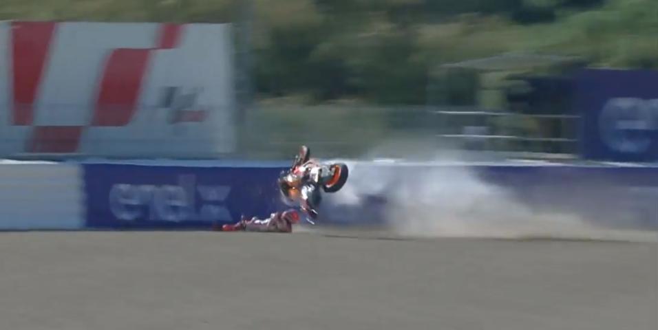 Race News 1/5/2021 MotoGP: Άσχημες πτώσεις για Marquez και Binder στην FP3 στην Jerez -ΦΩΤΟ-VIDEO Στην πίστα που του στέρησε 9 μήνες και μία ολόκληρη σεζόν από την καριέρα του, ο Marquez σημείωσε μία νέα πτώση κατά την FP3 στην έβδομη στροφή καταλήγοντας στα μπαλόνια.Ήταν μία σφοδρή πτώση και του ...
