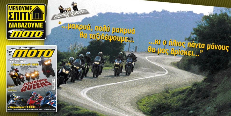 Αφιερώματα 13/4/2020 #MENOUMESPITIMEMOTO: Touring Queens - Συγκριτικό Super On-Off- Αρχείο Περιοδικού ΜΟΤΟ TOURING QUEENSΈξι ερωμένες και μία σύζυγος!Έτσι έχουμε συνηθίσει και έτσι θα συνεχίσουμε. Όταν κάνουμε συγκριτικό, δίνει το παρών ολόκληρη η κατηγορία την οποία αφορά η σύγκριση. Έστω και αν πρόκειται...